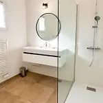 Zur Ausstattung des Badezimmers gehören auch eine getrennte Toilette, eine Dusche und eine Waschmaschine. Es gibt einen Haartrockner und Badelaken für zusätzlichen Komfort.